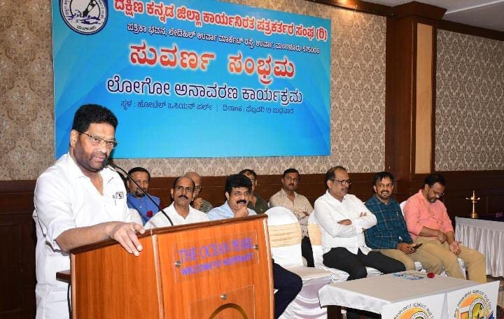 ಬುಧವಾರ ನಗರದ ಖಾಸಗಿ ಹೊಟೇಲ್ ನಲ್ಲಿ ನಡೆದ ದಕ್ಷಿಣ ಕನ್ನಡ ಜಿಲ್ಲಾ ಕಾರ್ಯನಿರತ ಪತ್ರಕರ್ತರ ಸಂಘದ “ಸುವರ್ಣ ಸಂಭ್ರಮ” ಲೋಗೋ ಅನಾವರಣಗೊಳಿಸಿ ಅವರು ಮಾತನಾಡಿದರು.