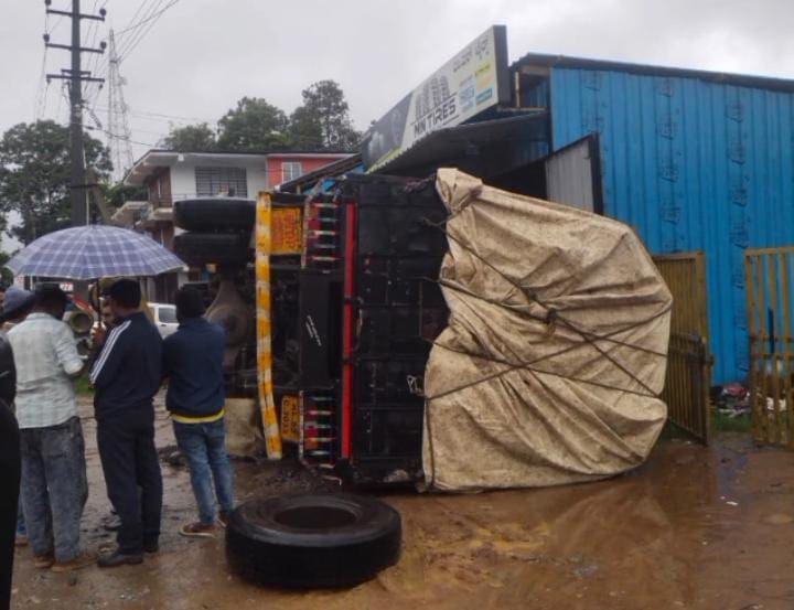 Madikeri: ಆಟೋ ರಿಕ್ಷಾ ಮೇಲೆ ಮಗುಚಿದ ಲಾರಿ: ಆಟೋ ರಿಕ್ಷಾ ಸಂಪೂರ್ಣ ಜಖಂ!