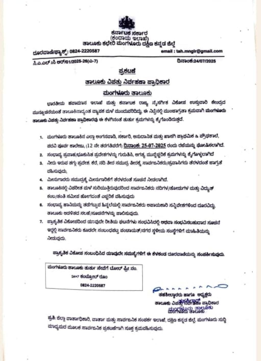 School Holiday : ನಾಳೆಯೂ ಮಂಗಳೂರು ತಾಲೂಕು ಶಾಲಾ ಕಾಲೇಜುಗಳಿಗೆ ರಜೆ ಘೋಷಣೆ News By ಹೊಸಕನ್ನಡ ನ್ಯೂಸ್ On Jul 24, 2025 Share the ArticleMangalore: ಭಾರೀ ಮಳೆಯ ಕಾರಣ ಮಂಗಳೂರು ತಾಲೂಕಿನ ಎಲ್ಲಾ ಅಂಗನವಾಡಿ ಸರಕಾರಿ, ಅನುದಾನಿತ ಮತ್ತು ಖಾಸಗಿ ಪ್ರಾಥಮಿಕ ಮತ್ತು ಪ್ರೌಢಶಾಲೆ ಪದವಿ ಪೂರ್ವ ಕಾಲೇಜು (12 ನೇ ತರಗತಿಯವರೆಗೆ) ದಿನಾಂಕ 25-07-2025 ರಂದು ರಜೆಯನ್ನು ಘೋಷಣೆ ಮಾಡಲಾಗಿದೆ.