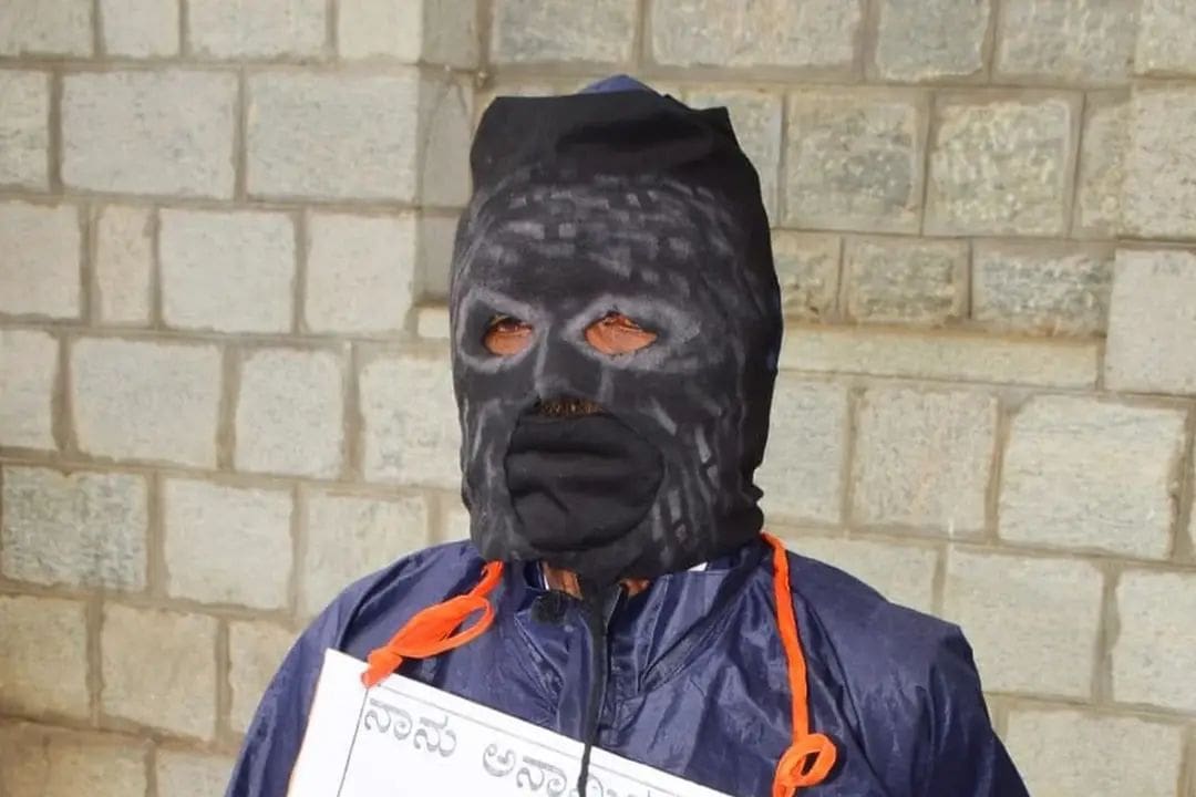 ಧರ್ಮಸ್ಥಳದಲ್ಲಿ ಶವಗಳನ್ನು ಹೂತಿದ್ದೇನೆ’ ಎನ್ನುವ ಮುಸುಕುಧಾರಿ ಅನಾಮಿಕ ಭೀಮನನ್ನು ಅಣಕಿಸುವಂತೆ ಮಂಡ್ಯದ ಮುಸುಕುಧಾರಿ ವ್ಯಕ್ತಿ ಕಾಣಿಸಿಕೊಂಡ. ಈತನ ಜೊತೆ ಬಂದಿದ್ದ ಕಾರ್ಯಕರ್ತರು ಕೇಂದ್ರ ಗೃಹ ಸಚಿವ ಅಮಿತ್ ಶಾ ಅವರಿಗೆ ಬರೆದಿದ್ದ ‘ರಕ್ತದಲ್ಲಿ ಬೆರಳಚ್ಚಿನ ಸಹಿ ಹಾಕಿದ್ದ ಪತ್ರ’ವನ್ನು ಜಿಲ್ಲಾಧಿಕಾರಿ ಕಚೇರಿಗೆ ಸಲ್ಲಿಸಿದರು.