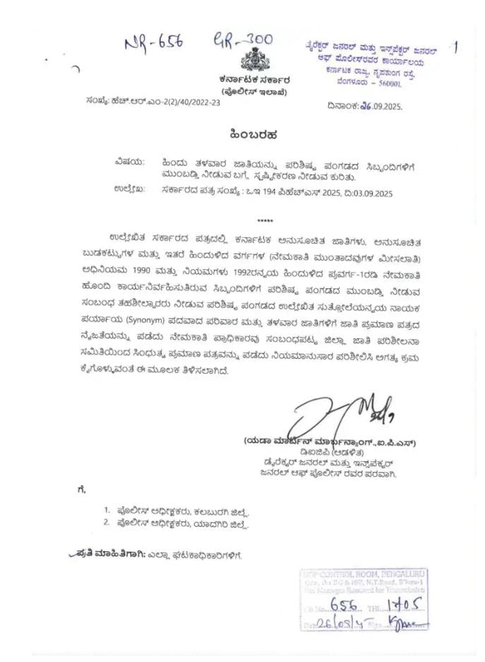 Karnataka: ಹಿಂದು ‘ತಳವಾರ’ ಜಾತಿಯನ್ನು ಪರಿಶಿಷ್ಟ ಪಂಗಡದ ಸಿಬ್ಬಂದಿಗಳಿಗೆ ‘ಮುಂಬಡ್ತಿ’ಗೆ ಆದೇಶ