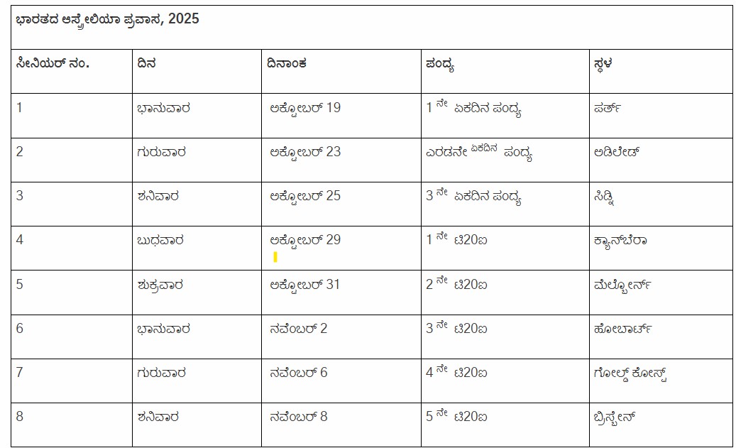 ಭಾರತದ ಆಸ್ಟ್ರೇಲಿಯಾ ಪ್ರವಾಸದ ವೇಳಾಪಟ್ಟಿ ಇಂತಿದೆ.
