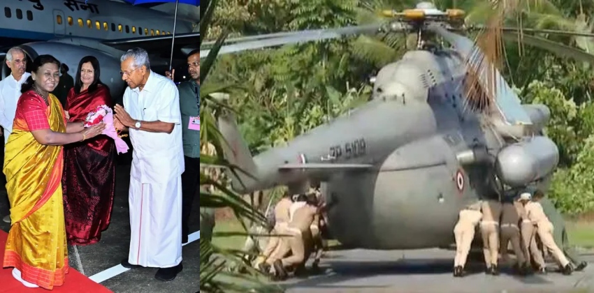 Presidents Helicopter Tire: ಶಬರಿಮಲೆ ದರ್ಶನಕ್ಕೆ ಬಂದಿದ್ದ ರಾಷ್ಟ್ರಪತಿ ಮುರ್ಮು ಅವರ ಹೆಲಿಕಾಪ್ಟರ್ ಇಳಿದ ಸ್ಥಳದ ಕಾಕ್ರೀಟ್ ನೆಲ ಕುಸಿದ ಘಟನೆ ಪತ್ತನಂತಿಟ್ಟದ ಕೊನ್ನಿ ಪ್ರಮಾದಂ ಒಳಾಂಗಣ ಕ್ರೀಡಾಂಗಣದಲ್ಲಿ ನಿರ್ಮಿಸಲಾಗಿದ್ದ ಹೆಲಿಪ್ಯಾಡ್ನಲ್ಲಿ ಈ ಘಟನೆ ನಡೆದಿದೆ. ಹೆಲಿಕಾಪ್ಟರ್ನ ಟೈರ್ಗಳು ಕಾಂಕ್ರೀಟ್ನಲ್ಲಿ ಹೂತುಹೋಗಿದ್ದು, ನಂತರ ಪೊಲೀಸರು ಮತ್ತು ಅಗ್ನಿಶಾಮಕ ದಳದವರು ಹೆಲಿಕಾಪ್ಟರ್ ಮೇಲೆಕ್ಕೆತ್ತಿದ್ದಾರೆ.