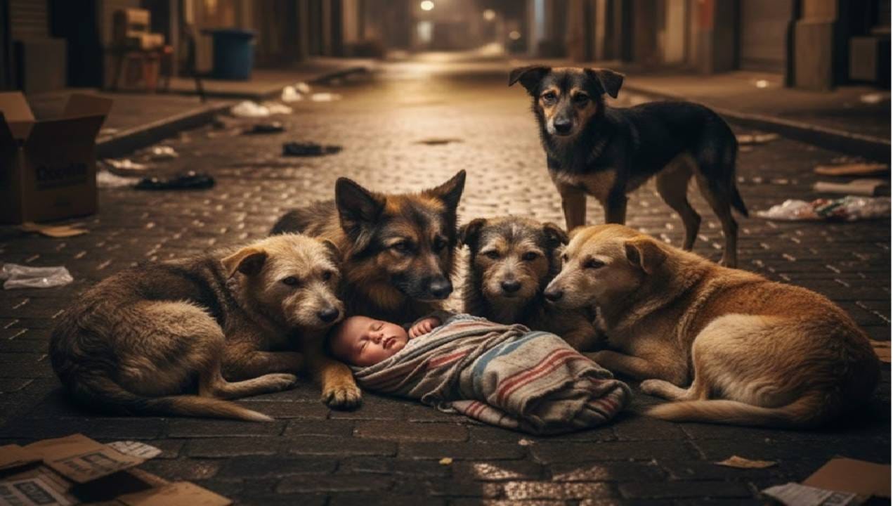 ಹೌದು, ಪಶ್ಚಿಮ ಬಂಗಾಳದ ನಾಡಿಯಾ ಜಿಲ್ಲೆಯಲ್ಲಿ ನಡೆದಿದೆ. ರೈಲ್ವೆ ಕಾರ್ಮಿಕರಿರುವ ವಸಾಹತು ಪ್ರದೇಶದ ಶೌಚಾಲಯದ ಹೊರಗೆ ಕೆಲವು ಗಂಟೆಗಳ ಹಿಂದೆ ಜನಿಸಿದ್ದ ಶಿಶು ಪತ್ತೆಯಾಗಿದೆ. ಮಗು ಹುಟ್ಟಿದಾಗ ಅದರ ಮೇಲಿದ್ದ ರಕ್ತದ ಕಲೆಗಳನ್ನು ಕೂಡ ಯಾರು ಒರೆಸಿರಲಿಲ್ಲ. ಮಗುವಿಗೆ ಬಟ್ಟೆ ಇರಲಿಲ್ಲ, ಮೈಮೇಲೆ ಯಾವುದೇ ಬೆಚ್ಚನೆಯ ವಸ್ತುಗಳು ಕೂಡ ಇರಲಿಲ್ಲ.ಆದರೆ ಆ ಮಗುವನ್ನು ಕಂಡ ಬೀದಿ ನಾಯಿಗಳು ಸುತ್ತಲೂ ನಿಂತು ಅದರ ರಕ್ಷಣೆ ಮಾಡಿವೆ.