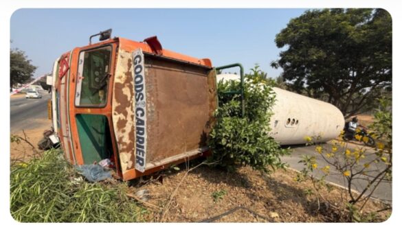 Bengaluru : ಬೆಂಗಳೂರಿಗೆ ಬರುತ್ತಿದ್ದ LPG ಟ್ಯಾಂಕರ್ ಪಲ್ಟಿ!!