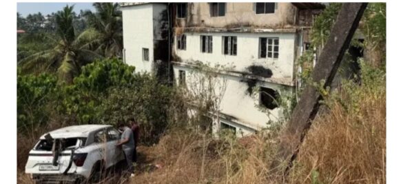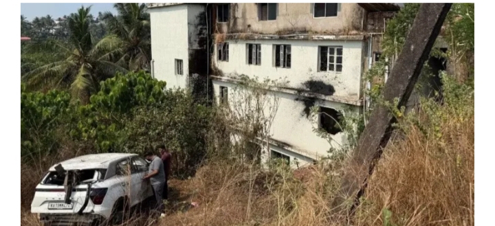 ಕೋಣಾಜೆ ಕಡೆಯಿಂದ ದೇರಳಕಟ್ಟೆ ಕಡೆಗೆ ಸಾಗುತ್ತಿದ್ದ ಕಾರು ಚಾಲಕನ ನಿಯಂತ್ರಣ ತಪ್ಪಿ ಸುಮಾರು 10 ಅಡಿ ಆಳಕ್ಕೆ ಜಿಗಿದು, ಸಭಾಂಗಣ ಕಟ್ಟಡದ ಗೋಡೆಗೆ ಅಪ್ಪಳಿಸಿ ಕೆಳಕ್ಕೆ ಉರುಳಿದೆ.