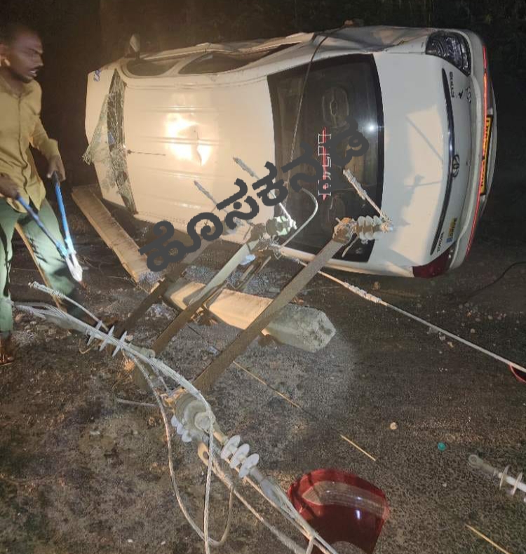ಅಪಘಾತಕ್ಕೆ ಕಾರು ನಜ್ಜುಗುಜ್ಜಾಗಿದ್ದು, ವಿದ್ಯುತ್ ಕಂಬಗಳು ಮುರಿದು ಬಿದ್ದಿದೆ. ವಿದ್ಯುತ್ ಸಂಪರ್ಕ ಕಡಿತಗೊಂಡಿರುವುದಾಗಿ ವರದಿಯಾಗಿದೆ.