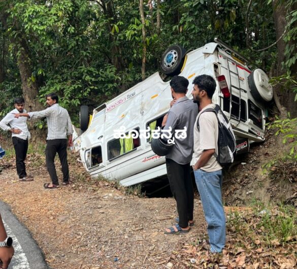 ಚಾರ್ಮಾಡಿ ಘಾಟ್ನಲ್ಲಿ ಭದ್ರಾವತಿಯಿಂದ ಧರ್ಮಸ್ಥಳಕ್ಕೆ ತೆರಳುತ್ತಿದ್ದ ಟಿವಿ ವಾಹನವೊಂದು 9 ನೇ ತಿರುವಿನ ಸಮೀಪ ಚಾಲಕನ ನಿಯಂತ್ರಣ ತಪ್ಪಿ ಪಲ್ಟಿಯಾಗಿದೆ.