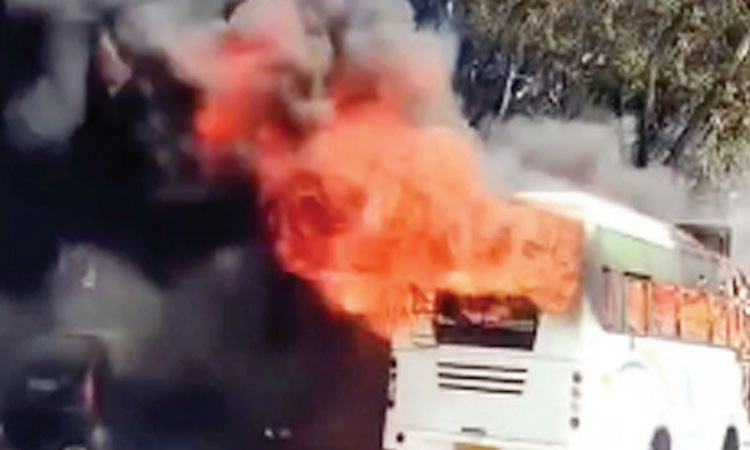 ಬೆಂಕಿಯ ಜ್ವಾಲೆ ಬಸ್ನ ಅಕ್ಕಪಕ್ಕ ನಿಂತಿರುವ ಇತರ ವಾಹನಗಳಿಗೆ ಕೂಡಾ ಹಬ್ಬಿದ್ದು, ಅಗ್ನಿಶಾಮಕ ದಳದ ಸಿಬ್ಬಂದಿ ಸ್ಥಳಕ್ಕೆ ಆಗಮಿಸಿ ಬೆಂಕಿ ನಂದಿಸಿದ್ದಾರೆ.