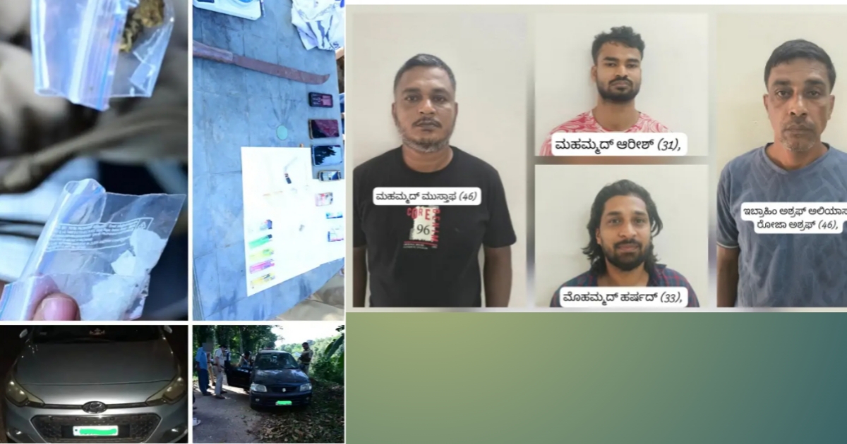 ಪುತ್ತೂರಿನ ಮೊಹಮ್ಮದ್ ಹರ್ಷದ್, ಮಹಮ್ಮದ್ ಆರೀಶ್, ಇಬ್ರಾಹಿಂ ಅಶ್ರಫ್ ಅಲಿಯಾಸ್ ರೋಜಾ ಅಶ್ರಫ್ ಹಾಗೂ ಮಾದಕ ವಸ್ತು ಪೂರೈಕೆದಾರ ಬಂಟ್ವಾಳ ಮೂಲದ ಮುಸ್ತಾಫ ಎನ್ನುವ ನಾಲ್ವರನ್ನು ಪೊಲೀಸರು ಬಂಧನ ಮಾಡಿದ್ದಾರೆ.