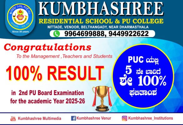 Home » ಕುಂಭಶ್ರೀ ವಿದ್ಯಾ ಸಂಸ್ಥೆ(ರಿ), ವೇಣೂರು: ಶೇ.100 ರಷ್ಟು ಫಲಿತಾಂಶ