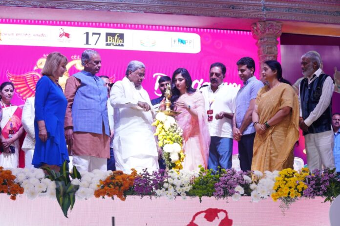 ಕರ್ನಾಟಕ ಚಲನಚಿತ್ರ ಅಕಾಡೆಮಿ ಅಧ್ಯಕ್ಷ ಸಾಧು ಕೋಕಿಲ ಅವರು ಪ್ರಾಸ್ತಾವಿಕವಾಗಿ ಮಾತನಾಡಿ ಈ 17ನೇ ಬೆಂಗಳೂರು ಅಂತಾರಾಷ್ಟ್ರೀಯ ಚಲನಚಿತ್ರೋತ್ಸವದಲ್ಲಿ ಅತ್ಯುತ್ತಮ ಚಿತ್ರಗಳನ್ನು ಆಯ್ಕೆ ಮಾಡಲಾಗಿದೆ. ಸುಮಾರು 255 ಚಿತ್ರಗಳು ಪ್ರದರ್ಶನ ಹಮಿಕೊಂಡಿದ್ದು ಅದರಲ್ಲಿ 65 ಮಹಿಳಾ ನಿರ್ದೇಶಕರ ಸಿನಿಮಾಗಳನ್ನು ಆಯ್ಕೆ ಮಾಡಲಾಗಿದೆ. ಚಿತ್ರೋತ್ಸವವನ್ನು ಮಹಿಳೆಯರಿಗೆ ಅರ್ಪಿಸಿರುವುದು ಅತ್ಯಂತ ಗೌರವಯುತ ಕಾರ್ಯವಾಗಿದೆ. ಸರ್ಕಾರ ಚಿತ್ರದ್ಯೋಮಕ್ಕೆ ಅನೇಕ ಯೋಜನೆಗಳನ್ನು ಜಾರಿಗೆ ತರುತ್ತಿದೆ ಅದರಲ್ಲಿ ಮುಖ್ಯವಾಗಿ ಮೈಸೂರಿನಲ್ಲಿ ಚಲನಚಿತ್ರ ನಗರಿ, ಅಕಾಡೆಮಿ ಕಟ್ಟಡದಲ್ಲಿ ಮಲ್ಟಿಫ್ಲೆಕ್ಸ್ ಚಿತ್ರಮಂದಿರ ಹಾಗೂ ವಾಣಿಜ್ಯ ಸಂಕೀರ್ಣ ನಿರ್ಮಿಸಲು ಯೋಜನೆ , ಕನ್ನಡ ಚಿತ್ರಗಳಿಗಾಗಿ ಓಟಿಟಿ ಸೇರಿದಂತೆ ಚಲನ ಚಿತ್ರ ಕಾರ್ಮಿಕರಿಗಾಗಿ ಅನೇಕ ಕಲ್ಯಾಣ ಕಾರ್ಯಕ್ರಮಗಳನ್ನು ಜಾರಿಗೆ ತರುತ್ತಿರುದಕ್ಕೆ ಸರ್ಕಾರಕ್ಕೆ ಧನ್ಯವಾದಗಳನ್ನು ಸಲ್ಲಿಸಿದರು.