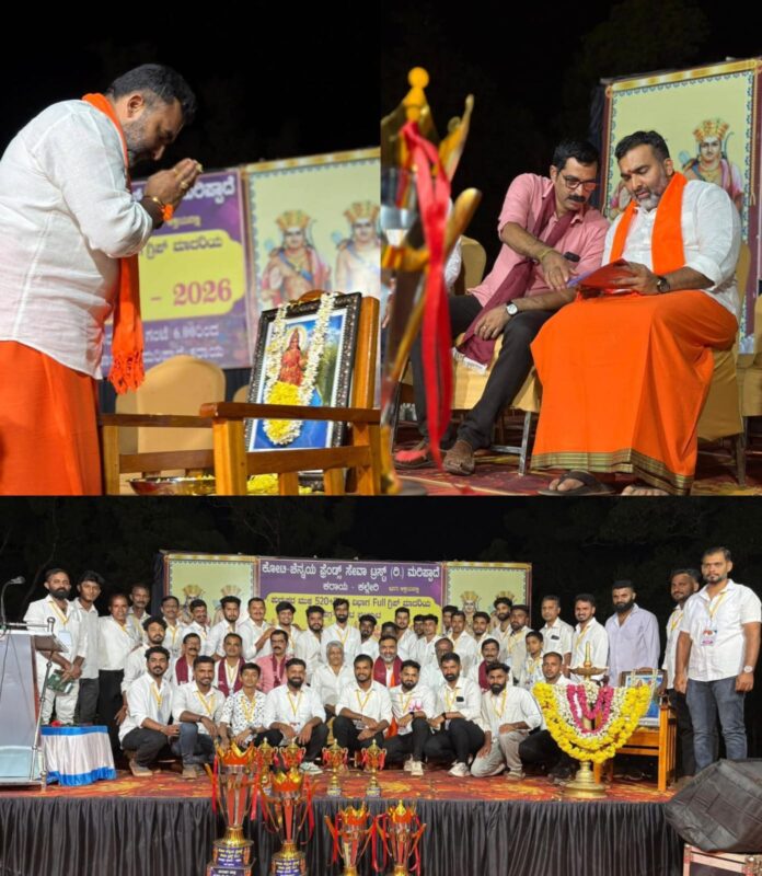 ಕೋಟಿ-ಚೆನ್ನಯ್ಯ ಫ್ರೆಂಡ್ಸ್ ಸೇವಾ ಟ್ರಸ್ಟ್ (ರಿ.) ಮರಿಪ್ಪಾದೆ, ಕರಾಯ -ಕಲ್ಲೇರಿ ಇಲ್ಲಿ ನಡೆದ ಹಗ್ಗಜಗ್ಗಾಟ ಪಂದ್ಯಾಟದಲ್ಲಿ ಶ್ರೀ ಕಿರಣ್ ಚಂದ್ರ ಡಿ. ಪುಷ್ಪಗಿರಿ ಅವರು ಭಾಗವಹಿಸಿ ಕ್ರೀಡಾಪಟುಗಳಿಗೆ ಶುಭ ಹಾರೈಸಿದರು.
