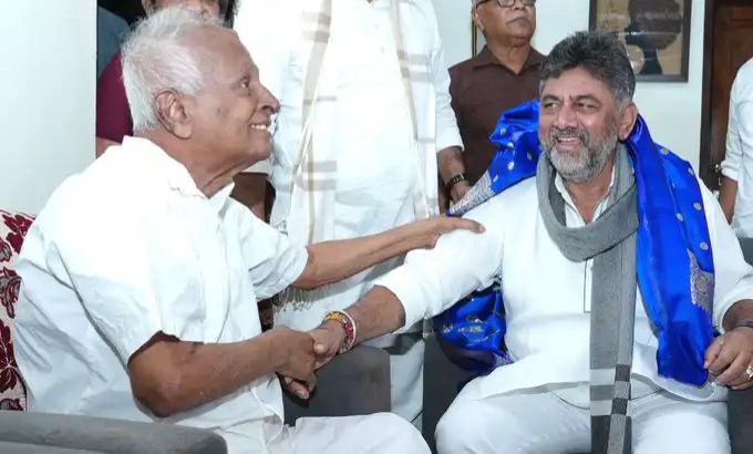 Bantwal: ವಿವಿಧ ಕಾರ್ಯಕ್ರಮಗಳಲ್ಲಿ ಪಾಲ್ಗೊಳ್ಳುವ ಸಲುವಾಗಿ ದಕ್ಷಿಣ ಕನ್ನಡ ಜಿಲ್ಲೆಗೆ ಆಗಮಿಸಿದ್ದ ಉಪಮುಖ್ಯಮಂತ್ರಿ ಡಿ.ಕೆ.ಶಿವಕುಮಾರ್ಅವರು ಕೇಂದ್ರದ ಮಾಜಿ ಸಚಿವ ಬಿ.ಜನಾರ್ದನ ಪೂಜಾರಿ ಅವರನ್ನು ಭೇಟಿ ಮಾಡಿ ಆರೋಗ್ಯ ವಿಚಾರಿಸಿ ಮಾತುಕತೆ ನಡೆಸಿದರು.