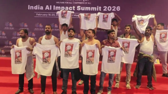 ನವದೆಹಲಿ: ಇಂಡಿಯಾ ಎಐ ಇಂಪ್ಯಾಕ್ಟ್ ಶೃಂಗಸಭೆ 2026 ರ ಸ್ಥಳವಾದ ಭಾರತ್ ಮಂಟಪದಲ್ಲಿ ಶುಕ್ರವಾರ ಭಾರತೀಯ ಯುವ ಕಾಂಗ್ರೆಸ್ ಸದಸ್ಯರು ‘ಶರ್ಟ್’ ಬಿಚ್ಚಿ ಪ್ರತಿಭಟನೆ ನಡೆಸಿದರು, ಇದು ಪೊಲೀಸ್ ಕ್ರಮ ಮತ್ತು ತೀಕ್ಷ್ಣ ರಾಜಕೀಯ ಪ್ರತಿಕ್ರಿಯೆಗಳಿಗೆ ಕಾರಣವಾಯಿತು.
