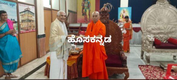 ಧರ್ಮಸ್ಥಳ : ಕನ್ಯಾಡಿ ಶ್ರೀ ರಾಮ ಕ್ಷೇತ್ರದಲ್ಲಿ ನಡೆಯುತ್ತಿರುವ 66ನೇ ವರ್ಷದ ಶ್ರೀ ರಾಮ ನಾಮ ಸಪ್ತಾಹ ಹಾಗೂ ವಾರ್ಷಿಕ ಜಾತ್ರಾ ಮಹೋತ್ಸವ ಸಂದರ್ಭದಲ್ಲಿ ಡಾ. ಪ್ರಭಾಕರ ಭಟ್ ಕಲ್ಲಡ್ಕ ಭೇಟಿ ನೀಡಿ ಶ್ರೀ ದೇವರ ದರ್ಶನ ಪಡೆದರು. ಈ ಸಂದರ್ಭದಲ್ಲಿ ಕ್ಷೇತ್ರದ ವತಿಯಿಂದ ಕ್ಷೇತ್ರದ ಪೀಠಾಧೀಶ ಮಹಾ ಮಂಡಲೇಶ್ವರ 1008 ಸದ್ಗುರು ಶ್ರೀ ಬ್ರಹ್ಮಾನಂದ ಸರಸ್ವತಿ ಸ್ವಾಮೀಜಿಯವರು ರವರನ್ನು ಗೌರವಿಸಿದರು.