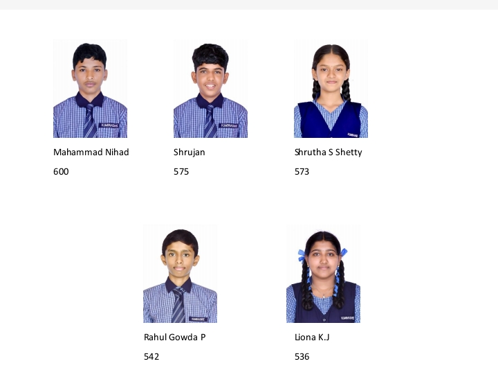 ಕುಂಭಶ್ರೀ ಎಸ್ ಎಸ್ ಎಲ್ ಸಿ ಬೋರ್ಡ್ ಪರೀಕ್ಷೆಯಲ್ಲಿ *100%* ಫಲಿತಾಂಶ ಬಂದಿರುವುದು ಸಂತಸದ ವಿಷಯ. ಕುಂಭಶ್ರೀಯಲ್ಲಿ ಸತತ 13ನೇ ಬಾರಿ 100% ಫಲಿತಾಂಶ ಬಂದಿರುತ್ತದೆ. ಮಹಮ್ಮದ್ ನಿಹಾದ್ 600, ಸೃಜನ್-575 ,ಶೃತ ಎಸ್ ಶೆಟ್ಟಿ-573 ,ರಾಹುಲ್ ಗೌಡ ಪಿ – 542, ಲಿಯೋನ ಕೆ . ಜೆ -536
