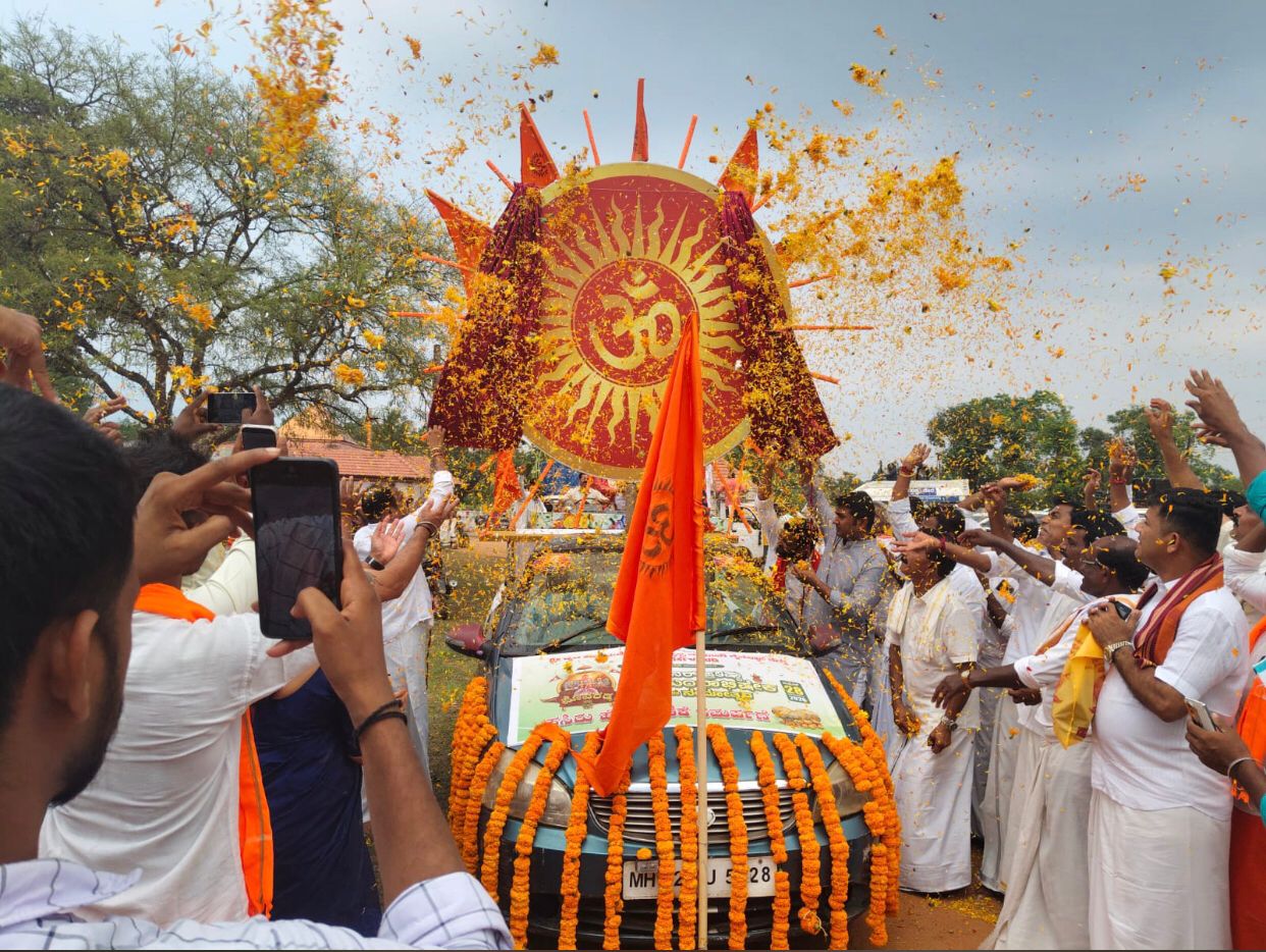 ಮರೋಡಿ ಶ್ರೀ ಉಮಾಮಹೇಶ್ವರ ದೇವಸ್ಥಾನದ ಆಡಳಿತ ಸಮಿತಿ ಅಧ್ಯಕ್ಷ ದೇವೇಂದ್ರ ಹೆಗ್ಡೆ ಕೊಕ್ರಾಡಿ ಅವರು ಹೊರೆಕಾಣಿಕೆಯ ಭವ್ಯ ಶೋಭಾಯಾತ್ರೆಗೆ ಚಾಲನೆ ನೀಡಿದರು.