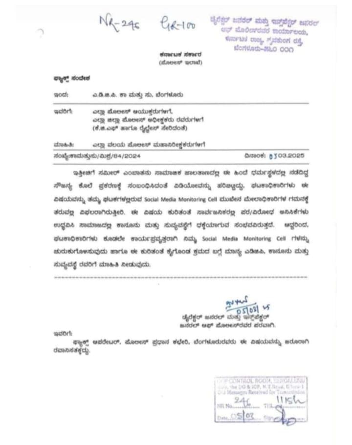 ರಾಜ್ಯ ಕಾನೂನು ಸುವ್ಯವಸ್ಥೆ ಎಡಿಜಿಪಿ ಹಿತೇಂದ್ರ, ಜಿಲ್ಲಾ ಪೊಲೀಸ್ ವಿಭಾಗದಲ್ಲಿ ರಚನೆಯಾಗಿರುವ ಸಾಮಾಜಿಕ ಜಾಲತಾಣಗಳ ನಿಗಾ ಘಟಕಗಳನ್ನು ಚುರುಕುಗೊಳಿಸುವಂತೆ ಎಲ್ಲಾ ಪೊಲೀಸ್ ವರಿಷ್ಠಾಧಿಕಾರಿಗಳಿಗೆ ಸೂಚನೆ ನೀಡಿದ್ದಾರೆ.