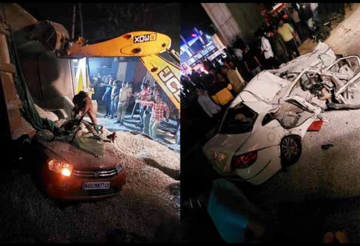 ಬೆಂಗಳೂರಿನಲ್ಲಿ ಭೀಕರ ಅಪಘಾತ: ಕಾರು, ಬೈಕ್ ಮೇಲೆ ಜಲ್ಲಿ ತುಂಬಿದ