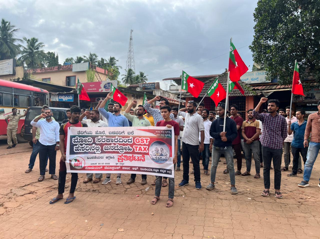 ಬೆಳ್ಳಾರೆ :ಮೋದಿ ಸರಕಾರದ ಅಸಂಬದ್ಧ ಮತ್ತು ಜನ ವಿರೋಧಿಯಾದ ಜಿ ಎಸ್ ಟಿ ತೆರಿಗೆ ಹೇರಿಕೆ ವಿರುದ್ಧ ಸೋಶಿಯಲ್ ಡೆಮಾಕ್ರಟಿಕ್ ಪಾರ್ಟಿ ಆಫ್ ಇಂಡಿಯಾ ಬೆಳ್ಳಾರೆ ಗ್ರಾಮ ಸಮಿತಿ ವತಿಯಿಂದ ಬೆಳ್ಳಾರೆ ಬಸ್ಸು ನಿಲ್ದಾಣದ ಬಳಿ ಪ್ರತಿಭಟನೆ ನಡೆಯಿತು.