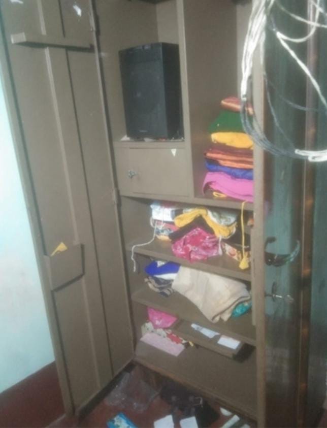 ನಿಶ್ಚಿತಾರ್ಥ ಮುಗಿಸಿಕೊಂಡು ಸಂಜೆ ಮನೆಗೆ ಬಂದು ನೋಡಿದಾಗ ಕಳ್ಳತನ ಆಗಿರುವುದು ಗಮನಕ್ಕೆ ಬಂದಿದೆ. 5,200ರೂ ನಗದು, ಚೈನ್, ಚಿನ್ನದ ಬಿಸ್ಕೆಟ್, ಬಳೆ, ಮಕ್ಕಳ ಅಭರಣ ಸಹಿತ ಒಟ್ಟಾರೆ 12,05,200 ರೂ. ಮೌಲ್ಯದ 40 ಪವನ್ ಚಿನ್ನಾಭರಣ ಕಳವಾಗಿದೆ.