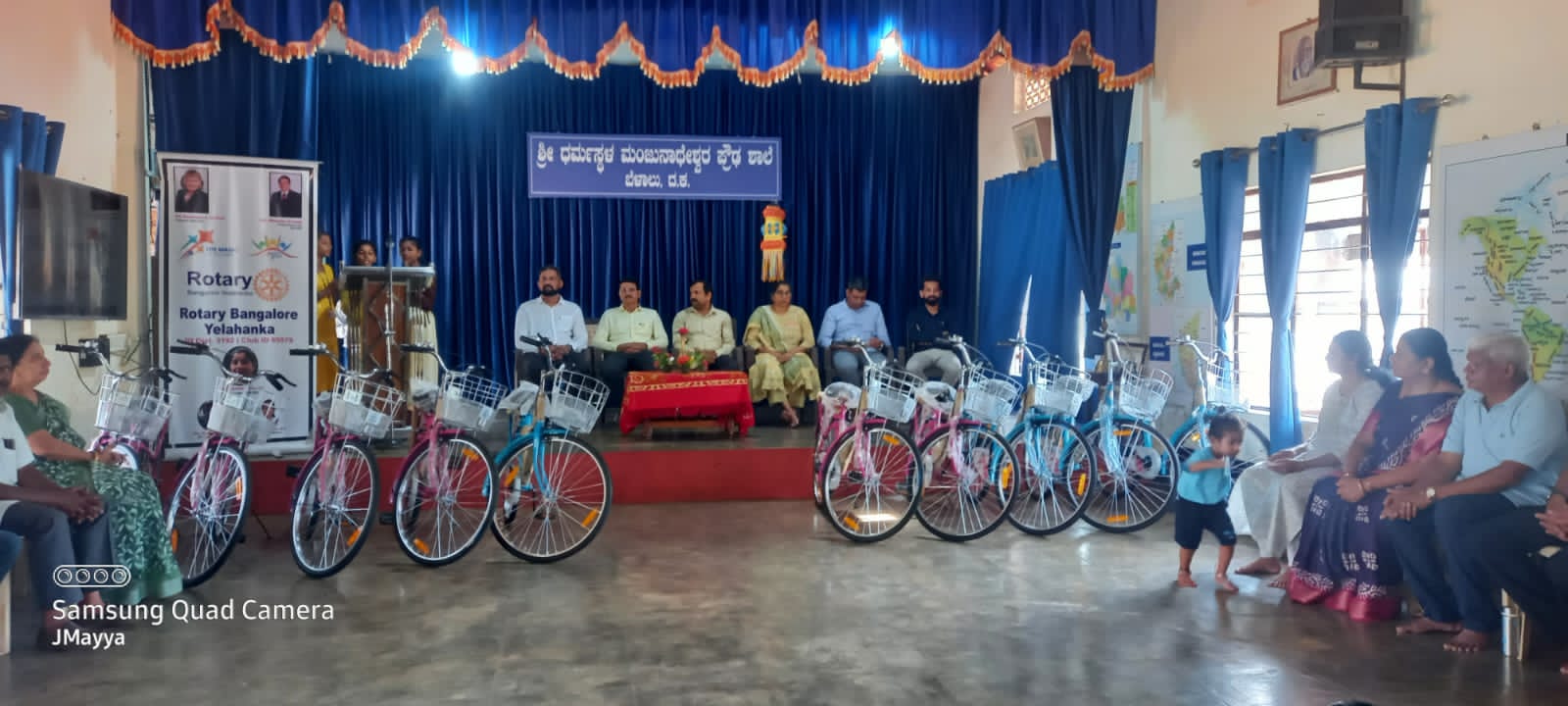 ಬೆಳ್ತಂಗಡಿ: ಬೆಳಾಲು ಶ್ರೀ ಧ.ಮಂ. ಪ್ರೌಢ ಶಾಲೆಯ ಹತ್ತು ವಿದ್ಯಾರ್ಥಿನಿಯರಿಗೆ ರೋಟರಿ ಕ್ಲಬ್, ಯಲಹಂಕ, ಬೆಂಗಳೂರು ಇವರ ವತಿಯಿಂದ ಬೈಸಿಕಲ್ ವಿತರಣಾ ಕಾರ್ಯಕ್ರಮ ಜರಗಿತು.