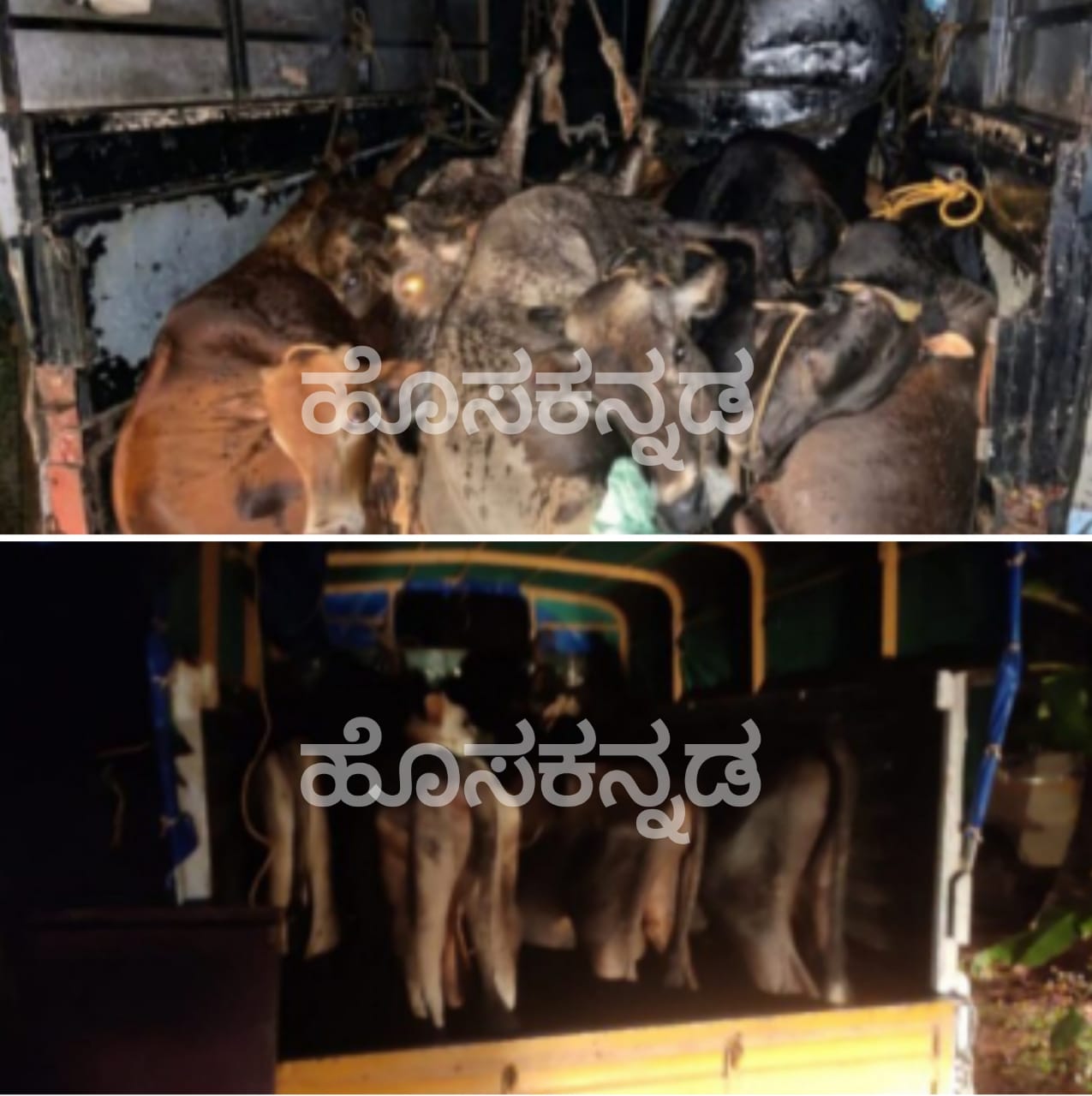 ಈ ಸಂದರ್ಭ ವಾಹನವನ್ನು ಸ್ಥಳದಲ್ಲೇ ಬಿಟ್ಟು ಗೋಕಳ್ಳರು ಪರಾರಿಯಾಗಿದ್ದಾರೆ. ಗೋಕಳ್ಳರು ಹಿಂಸಾತ್ಮಕ ರೀತಿಯಲ್ಲಿ ಕೈಕಾಲು ಕಟ್ಟಿ ಜಾನುವಾರುಗಳನ್ನು ಸಾಗಾಟ ಮಾಡುತ್ತಿದ್ದರು .ಈ ಸಂಬಂಧ ಪೊಲೀಸರು ಪ್ರಕರಣ ದಾಖಲಿಸಿಕೊಂಡಿದ್ದಾರೆ.