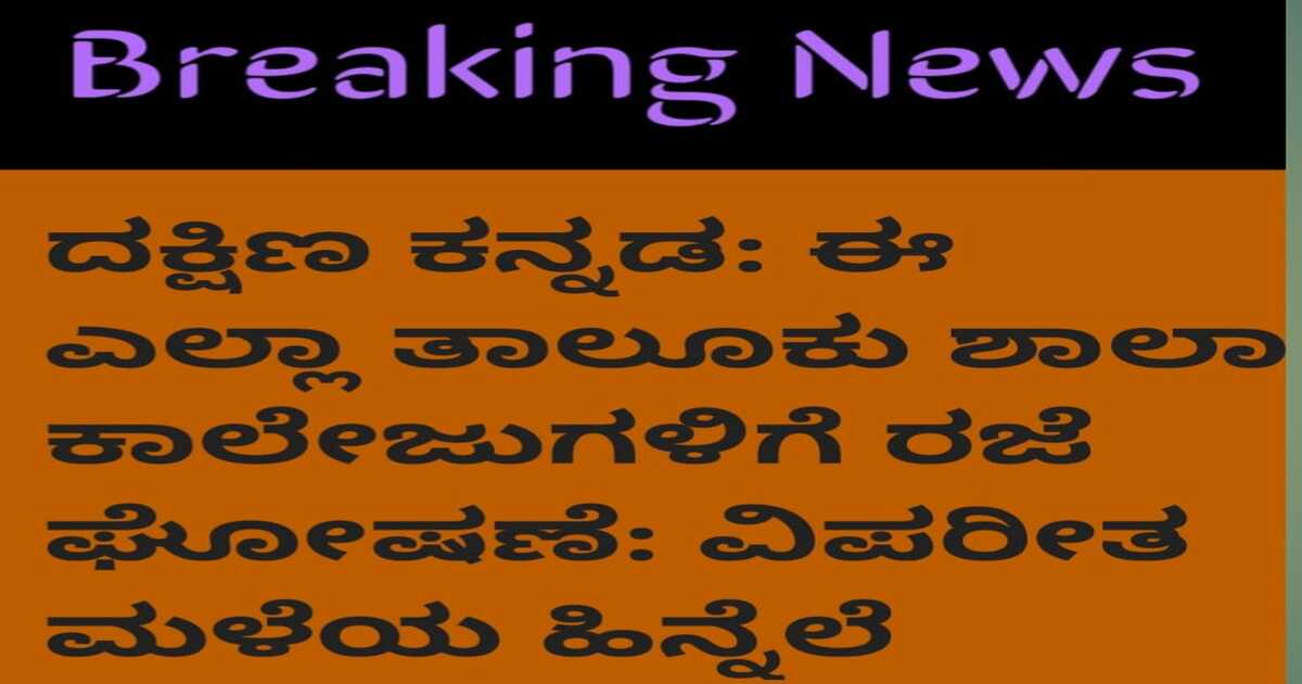 ದಕ್ಷಿಣ ಕನ್ನಡ: ಈ ಎಲ್ಲಾ ತಾಲೂಕು ಶಾಲಾ ಕಾಲೇಜುಗಳಿಗೆ ರಜೆ ಘೋಷಣೆ: ವಿಪರೀತ ಮಳೆಯ ಹಿನ್ನೆಲೆ
