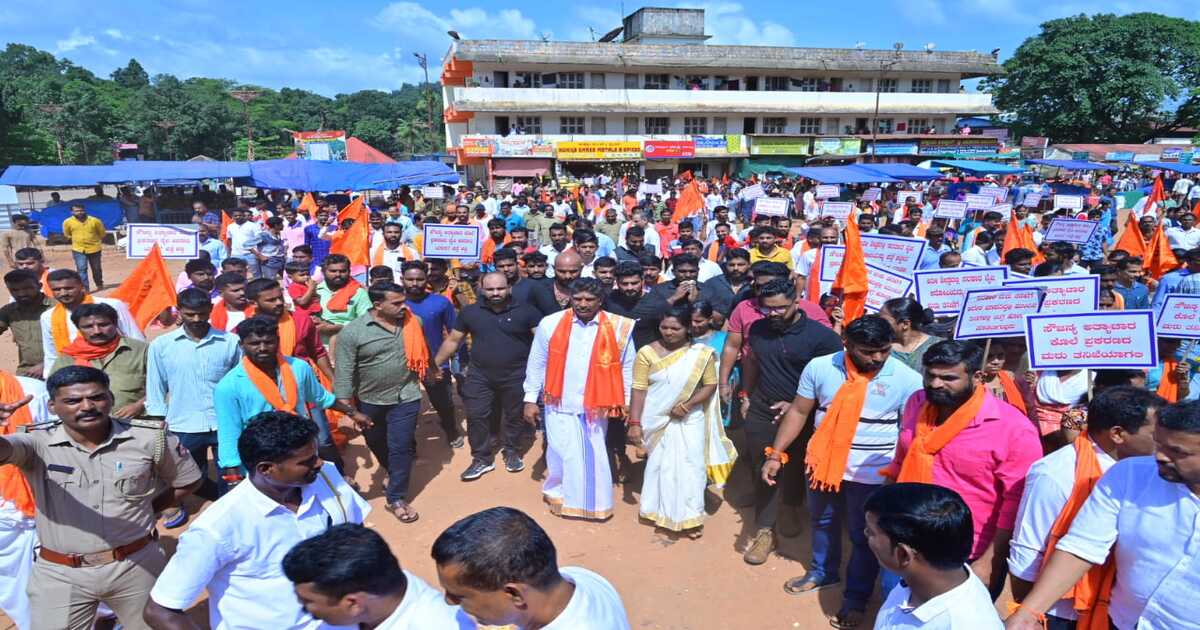 Sowjanya case: ಸುಬ್ರಹ್ಮಣ್ಯ : ಸೌಜನ್ಯ ಹತ್ಯೆ ಪ್ರಕರಣದ (Soujanya case )ನ್ಯಾಯಕ್ಕಾಗಿ ಹಾಗೂ ಮರು ತನಿಖೆಗೆ ಒತ್ತಾಯಿಸಿ ಆ.31 ರಂದು ಸುಬ್ರಹ್ಮಣ್ಯದ ಕುಮಾರಧಾರ ಬಳಿಯಿಂದ ದೇವಸ್ಥಾನದವರೆಗೆ ಮೌನ ಮೆರವಣಿಗೆ ಸಾಗರೋಪಾದಿಯಲ್ಲಿ ಜನ ಬೀದಿಗೆ ಬಂದು ಪ್ರತಿಭಟನೆ ನಡೆಸಿದ್ದಾರೆ. ಸುಬ್ರಹ್ಮಣ್ಯದ ಸೌಜನ್ಯಳ ನ್ಯಾಯಕ್ಕಾಗಿ ಹೋರಾಟ ಸಮಿತಿ ಹಾಗೂ ವಿವಿಧ ಸಂಘ ಸಂಸ್ಥೆಗಳ ಸಹಯೋಗದಿಂದ ಆರಂಭಗೊಂಡಿದೆ. ಕುಮಾರಧಾರ ಬಳಿಯಿಂದ ಆರಂಭವಾದ ಪಾದಯಾತ್ರೆ ದೇವಸ್ಥಾನದವರೆಗೆ ಸಾಗಿ ಅಲ್ಲಿ ಪ್ರಕರಣದ ನೈಜ ಆರೋಪಿಗಳಿಗೆ ಶಿಕ್ಷೆ ಸಿಗಲಿ ಎಂದು ಪ್ರಾರ್ಥನೆ ಸಲ್ಲಿಸಲಾಯಿತು.