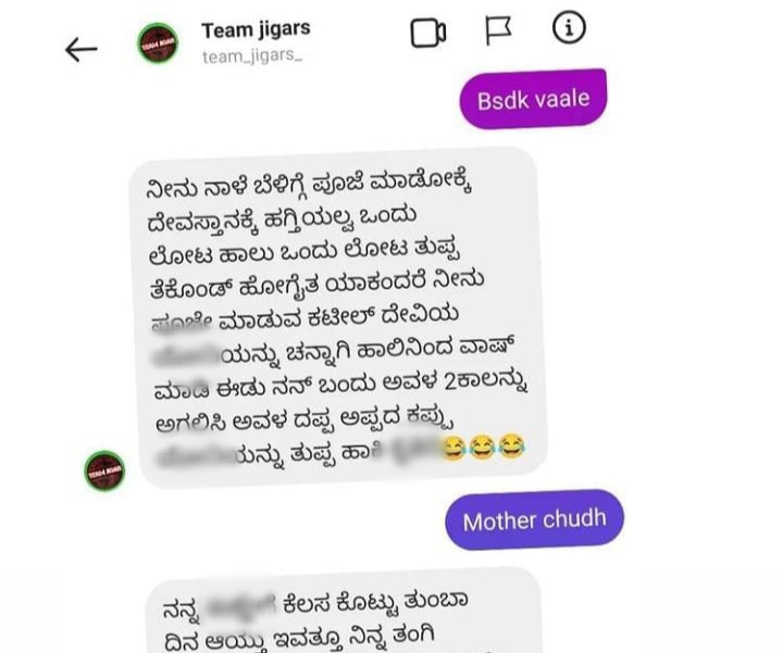 ಟೀಮ್ ಜಿಗರ್ ಎಂಬ ಇನ್ಸ್ಟಾಗ್ರಾಮ್ ಅಕೌಂಟ್ ಒಂದರಲ್ಲಿ ಕಟೀಲ್ ದೇವಿಯ ಬಗ್ಗೆ ಅಶ್ಲೀಲವಾಗಿ ಬರಹಗಳನ್ನು ಬರೆದಿದ್ದು, ಸಾಮಾಜಿಕ ಜಾಲತಾಣದಲ್ಲಿ ಕಿಡಿಗೇಡಿಗಳ ಬರಹಗಳು ವೈರಲ್ ಆಗಿದೆ.