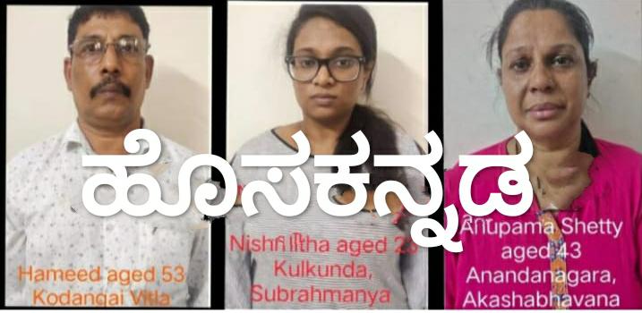 ಬಂಧಿತರನ್ನು ಕೆ ಪಿ ಹಮೀದ್ ( 54), ಆಕಾಶ ಭವನ ಬಳಿಯ ಅನುಪಮ( 46), ವಾಸುಕಿ ನಗರ, ನಾಗಬ್ರಹ್ಮ ಎಕ್ಕೂರಿನ ನಿಶ್ಮಿತ ( 23) ಎಂದು ಗುರುತಿಸಲಾಗಿದೆ.