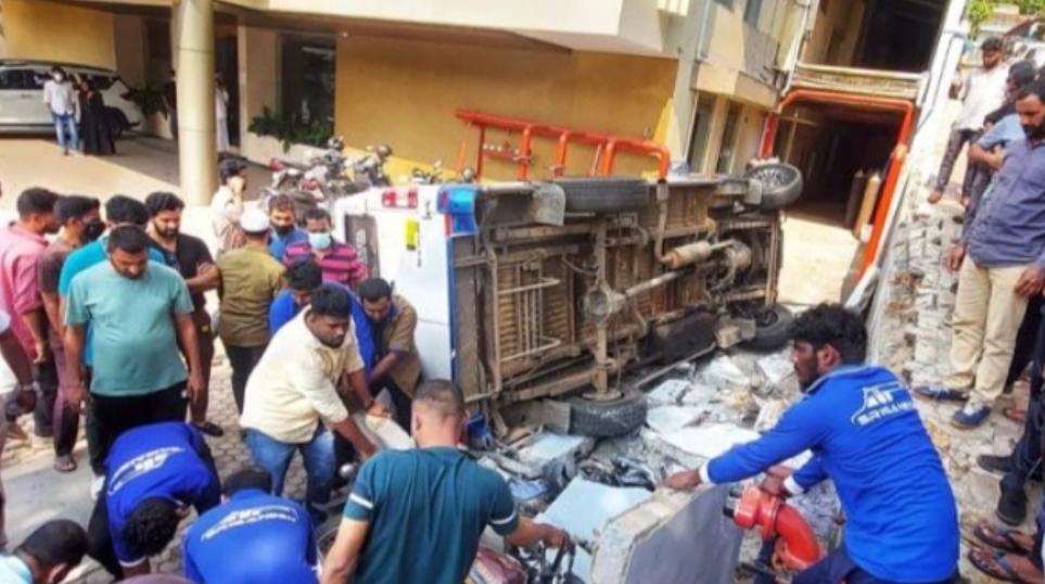 ಆ್ಯಂಬುಲೆನ್ಸ್ ರಿವರ್ಸ್ ತೆಗೆಯುವ ಸಂದರ್ಭದಲ್ಲಿ ಸುಮಾರು ಎಂಟು ಅಡಿ ಎತ್ತರದಿಂದ ಬಿದ್ದಿರುವ ಘಟನೆ ನಡೆದಿದೆ.