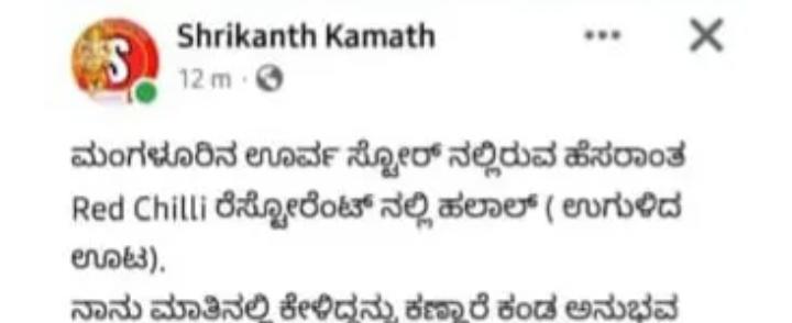 ವ್ಯಕ್ತಿಯೊರ್ವರು ಸಂಜೆ ಸುಮಾರು ತನ್ನ ಗೆಳೆಯರೊಂದಿಗೆ ರೆಡ್ ಚಿಲ್ಲಿ ರೆಸ್ಟೋರೆಂಟ್ ಗೆ ತೆರಳಿದ್ದು ಶವರ್ಮ ಆರ್ಡರ್ ಮಾಡಿದ್ದರಂತೆ. ಹೀಗೆ ಆರ್ಡರ್ ಮಾಡಿದ ತಿನಿಸಿಗಾಗಿ ಕಾಯುತ್ತಾ ಕುಳಿತಿರುವಾಗ ಪುಟ್ಟ ಕೋಣೆಯೊಂದರಲ್ಲಿ ಅದನ್ನು ತಯಾರಿಸುವಾತ ಅಡುಗೆಗಳಿಗೆ ಎಂಜಲು ಉಗುಳುತ್ತಿರುವುದನ್ನು ಗಮನಿಸಿದ್ದೇನೆ, ಹಾಗೂ ಈ ಬಗ್ಗೆ ಮಾಲಕರಲ್ಲಿ ವಿಚಾರಿಸಿದಾಗ ಗದರಿಸಿ ಬೆದರಿಕೆ ಹಾಕಿದ್ದಾರೆ ಎಂದು ಸಾಮಾಜಿಕ ಜಾಲತಾಣದಲ್ಲಿ ಹರಿಯಬಿಟ್ಟಿದ್ದಾರೆ. ಮೊದಲಿಗೆ ಶ್ರೀ ಕಾಂತ್ ಕಾಮತ್ ಎಂಬವರ ಫೇಸ್ ಬುಕ್ ಪೇಜ್ ನಲ್ಲಿ ಹರಿದಾಡಿದ ವಿಷಯವು, ಬಳಿಕ ವಾಟ್ಸಪ್ ಗ್ರೂಪ್ ಒಂದರಲ್ಲಿ ಹರಿದಾಡಿದ್ದು, ತದನಂತರ ಇತರ ಗ್ರೂಪ್ ಗಳಿಗೂ ಫಾರ್ ವಾರ್ಡ್ ಆಗಿದೆ.ಈ ವಿಚಾರದ ಕುರಿತು ಸಾಮಾಜಿಕ ಜಾಲತಾಣದಲ್ಲಿ ತೀವ್ರ ಆಕ್ರೋಶ ವ್ಯಕ್ತವಾಗಿದ್ದು ಕೆಲವೇ ಕ್ಷಣಗಳಲ್ಲಿ ಸುದ್ದಿಯು ಎಲ್ಲೆಡೆ ಹಬ್ಬಿದೆ.