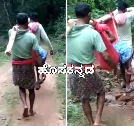 ಕಡಬ:ರಸ್ತೆ ಸಂಪರ್ಕವಿಲ್ಲದ ಕಾರಣ ಅನಾರೋಗ್ಯಪೀಡಿತ ವೃದ್ಧೆಯನ್ನು ಹೊತ್ತುಕೊಂಡು ಆಸ್ಪತ್ರೆಗೆ ಹೋಗುತ್ತಿರುವ ದೃಶ್ಯವೊಂದು ಸಾಮಾಜಿಕ ಜಾಲತಾಣದಲ್ಲಿ ವೈರಲ್ ಆಗಿದೆ.