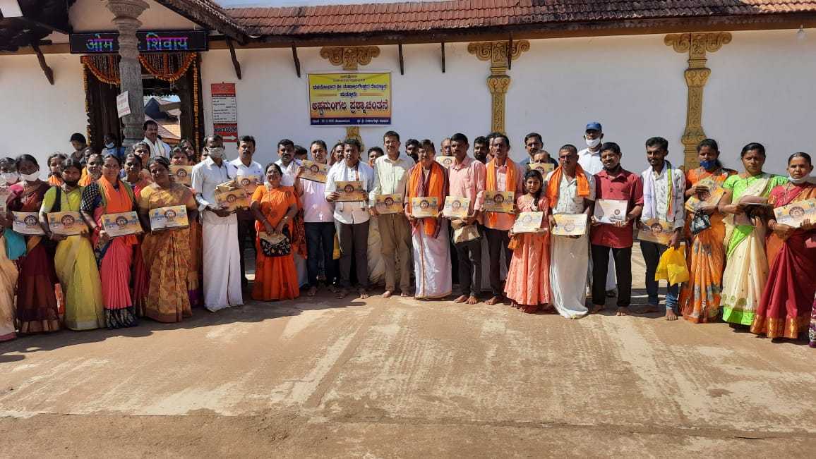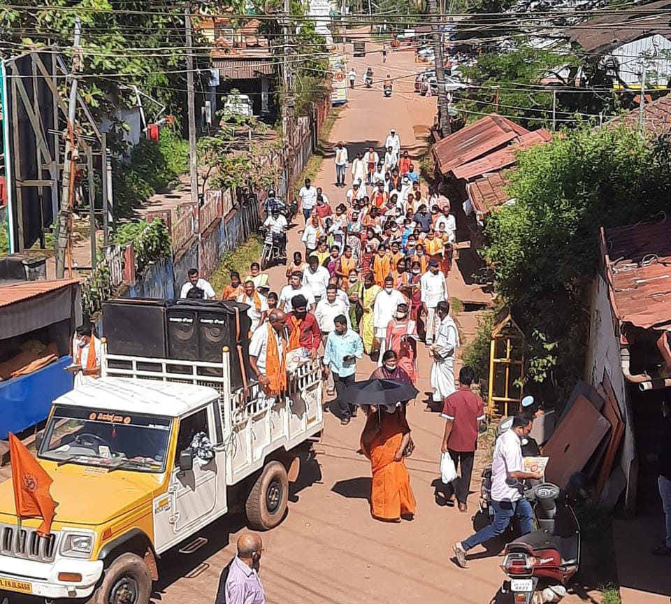 ಮಹಾಲಿಂಗೇಶ್ವರ ದೇವಳದಲ್ಲಿ ಪ್ರಾರ್ಥನೆ ಸಲ್ಲಿಸಿದ ಬಳಿಕ ಬೊಳುವಾರಿನಿಂದ ದರ್ಬೆ ತನಕ ಮೆರವಣಿಗೆ ಮೂಲಕ ಸಾಗಿ ಸಾರ್ವಜನಿಕರಿಗೆ ವಿತರಿಸಿದರು.