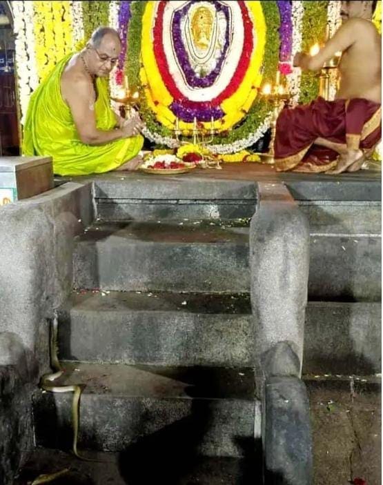 Kokkada: ಕುಕ್ಕೆ ಸುಬ್ರಮಣ್ಯದ ಪ್ರಧಾನ ಅರ್ಚಕ ಸೀತಾರಾಮ ಎಡಪಡಿತ್ತಾಯರವರು ಮಾ.9ರಂದು ಕೊಕ್ಕಡ (Kokkada) ಸೌತಡ್ಕ ಶ್ರೀ ಮಹಾಗಣಪತಿ ಸನ್ನಿಧಿಯಲ್ಲಿ ಮೂಡಪ್ಪ ಸೇವೆ ನಡೆಸುತ್ತಿದ್ದ ವೇಳೆ, ದೇವರ ಮುಂಭಾಗದಲ್ಲಿರುವ ನಾಗರಹಾವು ಕಾಣಿಸಿಕೊಂಡಿದೆ.