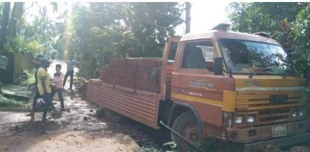 ಸುಳ್ಯ : ಸುಳ್ಯದ ಜಯನಗರ ಭಜನಾ ಮಂದಿರದ ಬಳಿ ಕೆಂಪುಕಲ್ಲು ಸಾಗಾಟ ಮಾಡುತ್ತಿದ್ದ ಈಚರ್ ಗಾಡಿಯೊಂದು ಬ್ರೇಕ್ ವೈಫಲ್ಯಗೊಂಡು ಇಳಿಜಾರು ಪ್ರದೇಶದಲ್ಲಿ ಮನೆಯೊಂದರ ಆವರಣ ಗೋಡೆಗೆ ಡಿಕ್ಕಿ ಹೊಡೆದ ಘಟನೆ ನ.16ರಂದುನಡೆದಿದೆ.