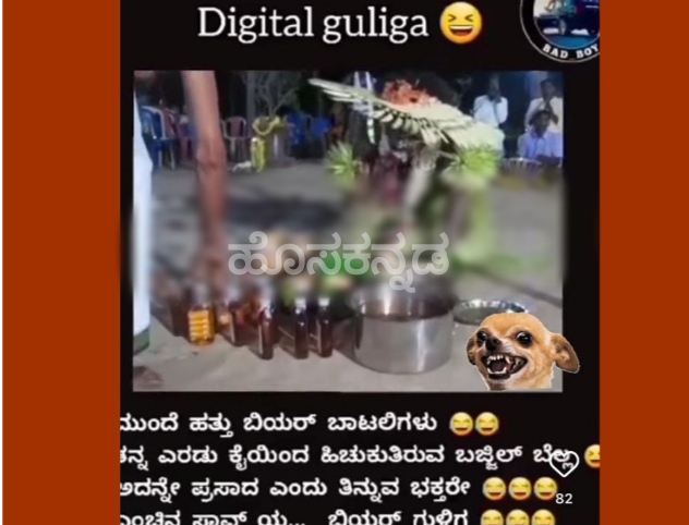 ಇತ್ತೀಚಿನ ಜನ ಹೆಚ್ಚಾಗಿ ಉಪಯೋಗಿಸುವ ಇನ್ಸ್ಟಾಗ್ರಾಮ್ ಜಾಲತಾಣದಲ್ಲಿ ತುಳುನಾಡಿನ ಕಾರ್ಣಿಕ ದೈವ ಗುಳಿಗನ ಕೋಲದ ವೀಡಿಯೋ ಹಾಕಿ ವಿಕೃತವಾಗಿ ಚಿತ್ರೀಕರಿಸಲಾಗಿದೆ. ಅದಲ್ಲದೇ ಹತ್ತು ಬಿಯರ್ ಬಾಟಲ್ ಹಾಗೂ ಕೈಯ್ಯಲ್ಲಿ ಹಿಸುಕುವ ಬಜಿಲ್ ಬೆಲ್ಲ ಎಂಬಂತೆಲ್ಲ ಬರೆಯಲಾಗಿದೆ.