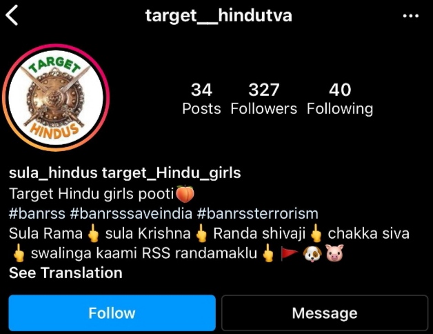 ಇನ್ನೊಂದೆಡೆ ಹಿಂದೂ ಸಾಮ್ರಾಟ್ ಛತ್ರಪತಿ ಶಿವಾಜಿ ಮಹಾರಾಜ್ ರ ಪ್ರತಿಮೆಗೆ ಮೂತ್ರಹೊಯ್ಯುವ ಹಾಗೂ ಹಂದಿ-ನಾಯಿಗಳು ಮೂಸಿ ನೋಡುವ ರೀತಿಯಲ್ಲಿ ಎಡಿಟ್ ಮಾಡಲಾಗಿದೆ.ಇಷ್ಟಕ್ಕೆ ಸುಮ್ಮನಾಗದ ಕಿಡಿಗೇಡಿಗಳು ಲವ್ ಜಿಹಾದ್ ಹೆಸರಿನಲ್ಲಿ ಹಿಂದೂ ಹುಡುಗಿಯರು ತುಂಬಾ ಕ್ಯೂಟ್ ಎಂಬತೆಲ್ಲಾ ವಿಕಾರವಾಗಿ ಬರೆಯಲಾಗಿದೆ. ಟಾರ್ಗೆಟ್ ಹಿಂದುತ್ವ ಎಂಬ ಇನ್ಸ್ಟಾಗ್ರಾಮ್ ಪೇಜ್ ನಲ್ಲಿ ಇಂತಹ ಪೋಸ್ಟ್ ಗಳು ಕಂಡುಬಂದಿದ್ದು ಹಿಂದೂಗಳು ಆಕ್ರೋಶಿತರಾಗಿದ್ದಾರೆ.