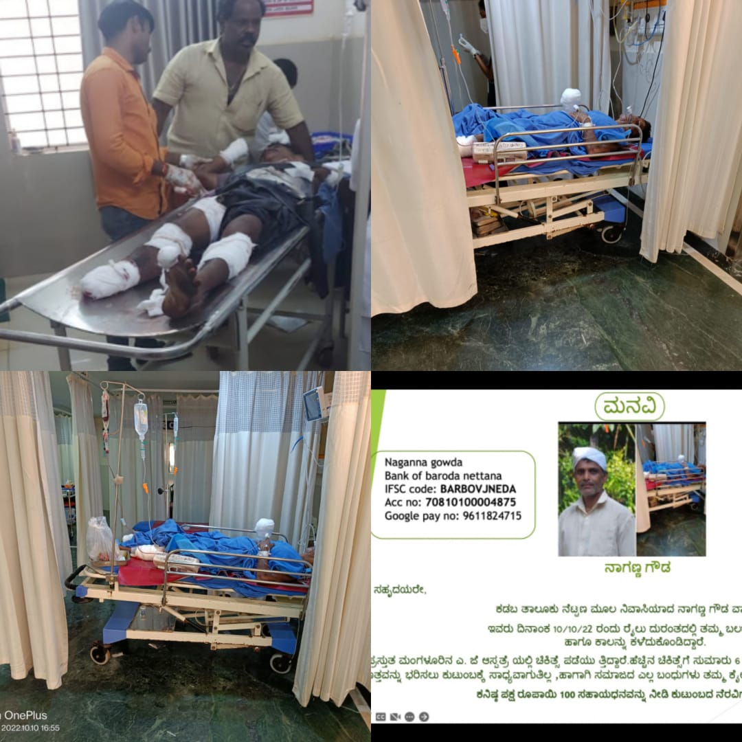 ಸದ್ಯ ಗಂಭೀರ ಗಾಯಗಳ ಹಿನ್ನೆಲೆಯಲ್ಲಿ ಮಂಗಳೂರಿನ ಪ್ರಸಿದ್ಧ ಎ.ಜೆ ಆಸ್ಪತ್ರೆಯಲ್ಲಿ ಹೆಚ್ಚಿನ ಚಿಕಿತ್ಸೆ ಮುಂದುವರಿಸಿದ್ದು, ಈಗಾಗಲೇ ಸುಮಾರು ಮೊತ್ತ ತಗುಲಿದೆ. ತೀರಾ ಬಡ ಕುಟುಂಬ ಇವರದ್ದಾಗಿದ್ದು, ನಾಲ್ವರು ಹೆಣ್ಣು ಮಕ್ಕಳನ್ನು ಶಾಲೆಗೆ ಕಳುಹಿಸಿಕೊಂಡು, ದುಡಿದು ಬದುಕುತ್ತಿದ್ದ ಕುಟುಂಬಕ್ಕೆ ಬರ ಸಿಡಿಲು ಬಡಿದಂತಾಗಿದೆ. ಮುಂದಿನ ಚಿಕಿತ್ಸೆಗಾಗಿ ಹೆಚ್ಚಿನ ಮೊತ್ತ ತಗುಲಲಿದ್ದು ಸುಮಾರು 8-10 ಲಕ್ಷ ಹಣ ಹೊಂದಿಸಲು ಕುಟುಂಬ ಸಮಾಜದ ಮುಂದೆ ಕೈಚಾಚಿದೆ.