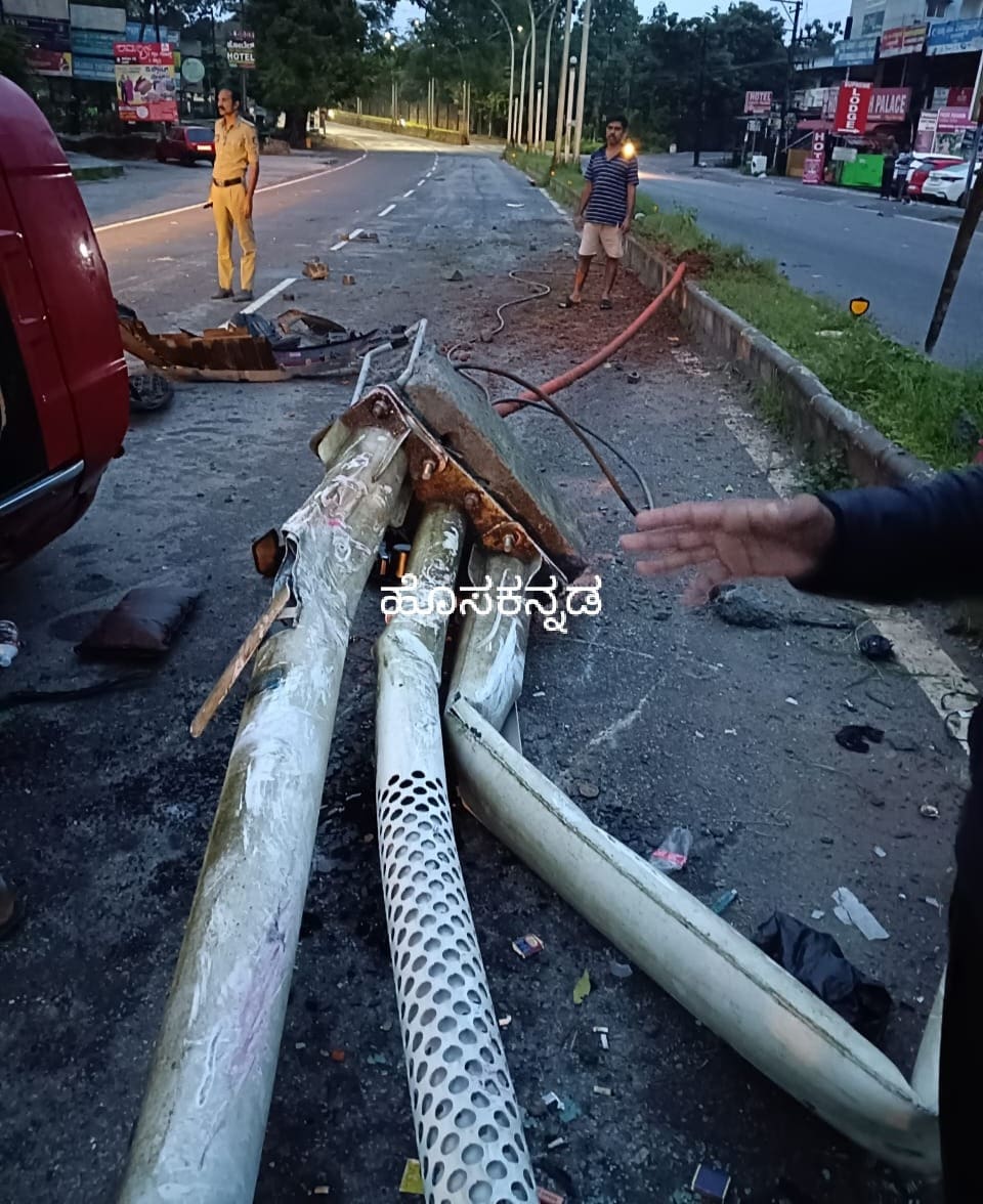 ಚಾಲಕ ಪ್ರಜ್ವಲ್ ಅನಿಯಂತ್ರಿತ ವೇಗದಲ್ಲಿ ಬಂದು ಕಾರನ್ನು ನಿಯಂತ್ರಿಸಲಾಗದೆ ಕಾರು ಡಿವೈಡರ್ ಗೆ ಡಿಕ್ಕಿ ಹೊಡೆದಿದೆ. ಡಿಕ್ಕಿ ಹೊಡೆದ ವೇಗಕ್ಕೆ ಲೈಟು ಕಂಬಗಳು ಮುರಿದುಬಿದ್ದಿವೆ. ಬೆಂಕಿ ನಂತಹ ಅತ್ಯಂತ ಸುರಕ್ಷಿತ ವಾಹನ ಕೂಡ ಅರೆ ಬರೆ ಮುದ್ದೆಯಾಗಿದೆ.