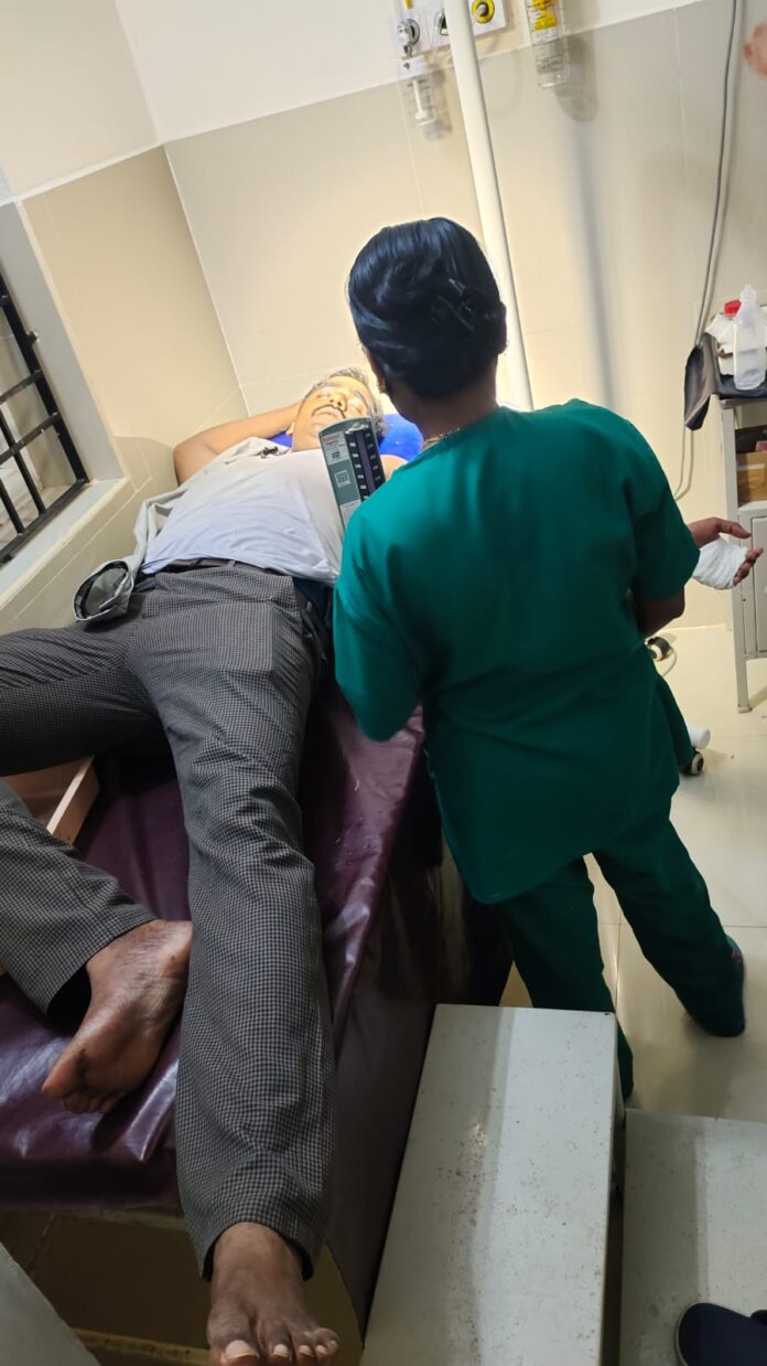 ಘಟನೆಯಲ್ಲಿ ಪೋಲೀಸ್ ಇನ್ಸ್ ಪೆಕ್ಟರ್ ಉಮೇಶ್, ಮಹಿಳಾ ಎಸ್.ಐ ಓಮನ ಹಾಗೂ ಸಿಬ್ಬಂದಿ ಗಳ ಮೇಲೆ ಕಲ್ಲು ತೂರಾಟ ನಡೆಸಿ ಗಾಯಗೊಂಡಿದ್ದಾರೆ