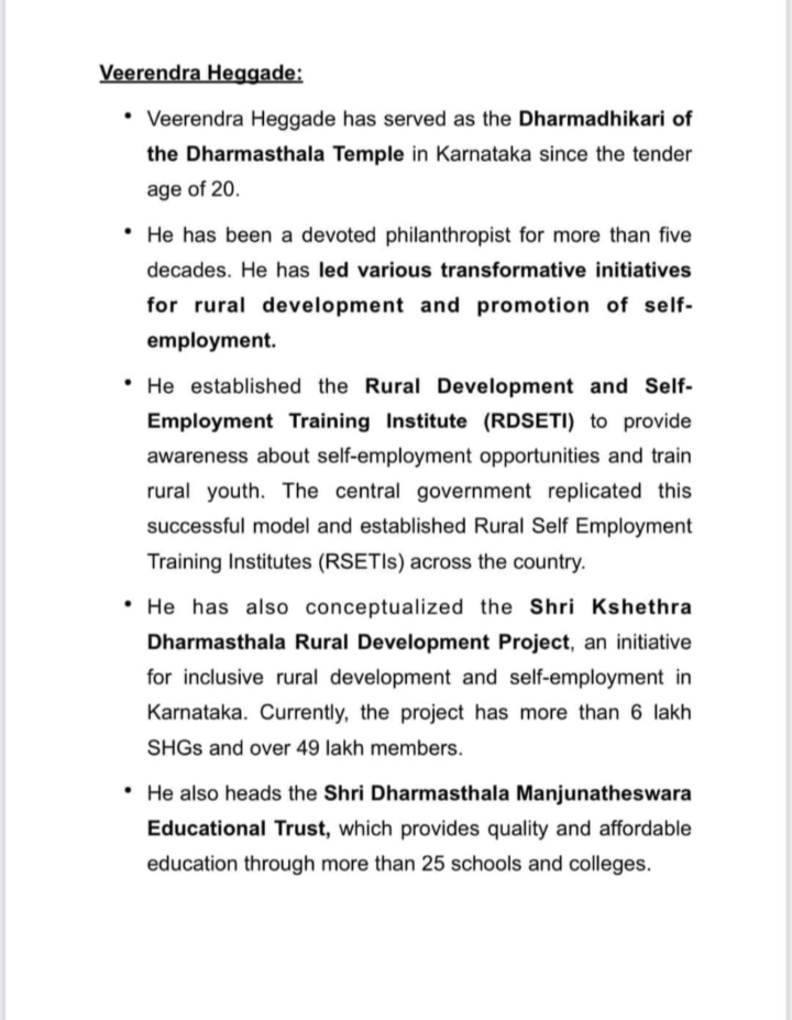 Breaking | ರಾಜ್ಯಸಭೆಗೆ ಧರ್ಮಸ್ಥಳದ ಧರ್ಮಾಧಿಕಾರಿ ಡಿ .ವೀರೇಂದ್ರ ಹೆಗಡೆ ನಾಮನಿರ್ದೇಶನ : ಪ್ರಧಾನಿ ಮೋದಿ ಘೋಷಣೆ