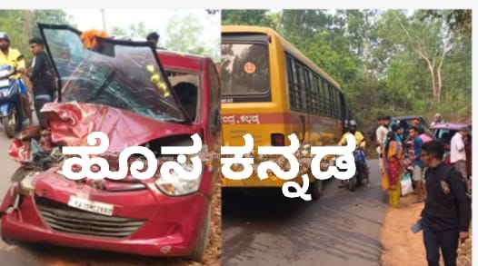 ವಿಟ್ಲ : ಕುಡ್ತಮುಗೇರು ಸಮೀಪದ ಮಂಕಡೆಯ ಕಲ್ಕಾಜೆ ಎಂಬಲ್ಲಿ ಸ್ಕೂಲ್ ಬಸ್ ಮತ್ತು ಕಾರಿನ ನಡುವೆ ಬುಧವಾರ ಭೀಕರ ಅಪಘಾತ ಸಂಭವಿಸಿದೆ.