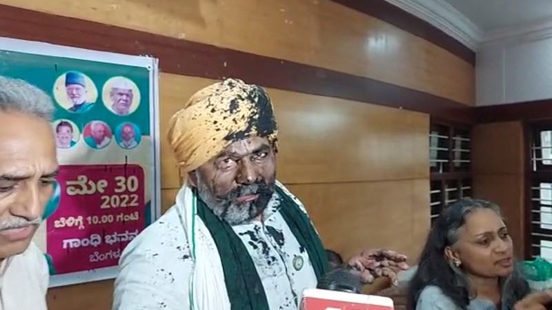 ರಾಕೇಶ್ ಟಿಕಾಯತ್ ಮೇಲೆ ಕೋಡಿಹಳ್ಳಿ ಚಂದ್ರಶೇಖರ್ ಭ್ರಷ್ಟಾಚಾರದ ಆರೋಪ ಮಾಡಿದ್ದರು. ಇದಕ್ಕೆ ಇಂದು ಬೆಂಗಳೂರಿನ ಗಾಂಧಿ ಭವನದಲ್ಲಿ ಸ್ಪಷ್ಟಿಕರಣ ನೀಡುತ್ತಿದ್ದ ವೇಳೆ ಮಸಿ ಬಳಿಯಲಾಗಿದೆ.