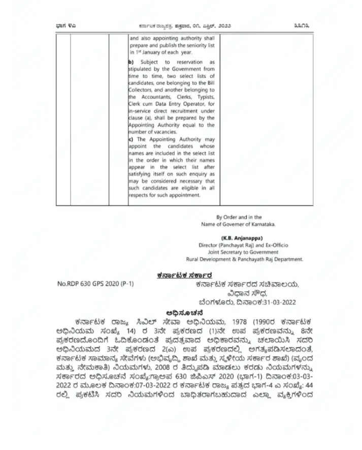 ಹುದ್ದೆ : ಗ್ರಾಮ ಪಂಚಾಯತ್ ಕಾರ್ಯದರ್ಶಿ ಮತ್ತು ಗ್ರಾಮೀಣಾಭಿವೃದ್ಧಿ ಸಹಾಯಕ (ಗ್ರೇಡ್ 2) ಹುದ್ದೆಗೆ ಅಧಿಸೂಚನೆಯನ್ನು ಹೊರಡಿಸಿದೆ.
