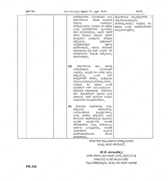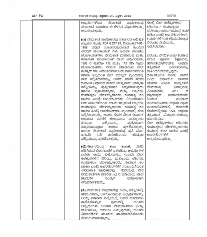ಹಿಂದಿನ ಮಂಡಲ ಪಂಚಾಯತ್ ಅಥವಾ ಗ್ರಾಮ ಪಂಚಾಯತ್ ಗಳಲ್ಲಿ ಬಿಲ್ ಕಲೆಕ್ಟರ್ ಗಳು/ಗುಮಾಸ್ತರು/ ಬೆರಳಚ್ಚುಗಾರರು/ಗುಮಾಸ್ತ ಕಮ್ ಡೇಟಾ ಎಂಟ್ರಿ ಆಪರೇಟರ್ ಗಳಾಗಿ 6 ವರ್ಷಗಳಿಗಿಂತ ಕಡಿಮೆ ಸೇವೆ ಸಲ್ಲಿಸಿರಬೇಕು.