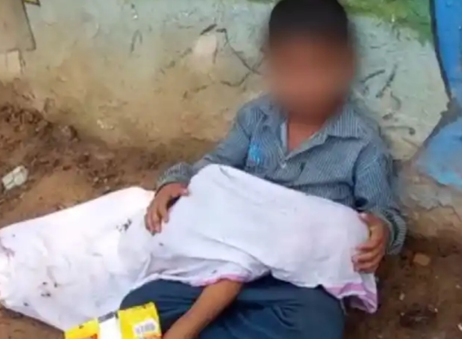 ಸಹೋದರನ ಶವವನ್ನು ಮಡಿಲಲ್ಲಿ ಮಲಗಿಸಿಕೊಂಡು ರಸ್ತೆ ಬದಿ ಕುಳಿತಿರುವ 8 ವರ್ಷದ ಬಾಲಕ