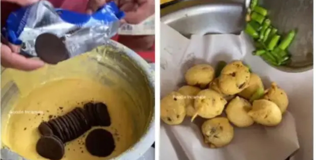 ಇಲ್ಲಿಯವರೆಗೆ ಆಲೂಗಡ್ಡೆ, ಮೆಣಸು, ಈರುಳ್ಳಿಯಲ್ಲಿ ಪಕೋಡಾ ತಿಂದಿರಬಹುದು. ಆದರೆ ಎಂದಾದರೂ ಓರಿಯೊ ಬಿಸ್ಕೆಟ್​ನಿಂದ ತಯಾರಿಸಿದ ಪಕೋಡಾ ಸವಿದಿದ್ದೀರಾ? ಇತ್ತೀಚೆಗೆ ಸಾಮಾಜಿಕ ಜಾಲತಾಣದಲ್ಲಿ ಫುಲ್ ಸುದ್ದಿಯಲ್ಲಿದೆ ಓರಿಯೊ ಪಕೋಡ. ವಿಡಿಯೊದಲ್ಲಿ ಗಮನಿಸುವಂತೆ ವ್ಯಾಪಾರಿಯು ಓರಿಯೊ ಪ್ಯಾಕೇಟ್ ತೆಗೆದು ಬಿಸ್ಕೆಟ್​ಗಳನ್ನು ಕಡಲೆ ಹಿಟ್ಟಿನಲ್ಲಿ ಅದ್ದಿ ಬಂಡಿಗೆ ಬಿಟ್ಟಿದ್ದಾರೆ. ಕಾದ ಎಣ್ಣೆಯಲ್ಲಿ ಕರಿದ ನಂತರ ಬಂಡಿಯಿಂದ ಓರಿಯೋ ಪಕೋಡಾವನ್ನು ತೆಗೆದಿದ್ದಾರೆ.